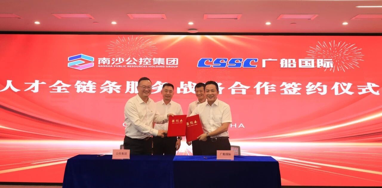 11月6日,广船国际有限公司(下称“广船国际”)与广州南沙公共资源控股集团有限公司(下称“南沙公控集团”)在南沙国际人才港成功举行人才全链条服务战略合作签约仪式,双方将围绕人才链与产业链的深度融合,整合资源优势,共同推动区域人才发展体系与产业升级协同并进,为推动粤港澳大湾区建设和国家海洋强国战略实施提供有力支撑。