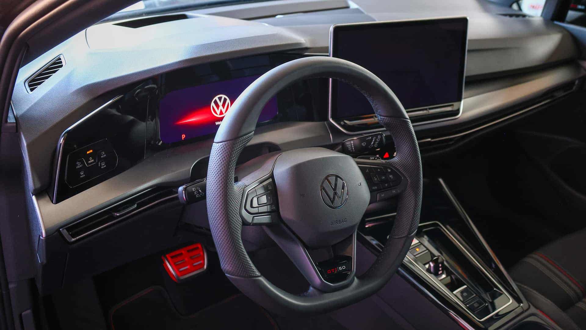 进入车内,高尔夫GTI 50周年特别版将复古与现代完美融合。标志性的格子布座椅复刻初代设计,精致红色缝线点缀其中,让人瞬间回到激情燃烧的年代;方向盘12点位置的专属50周年徽章,低调而不失尊贵,彰显其独特身份。中控台采用大量碳纤维饰板,提升质感的同时,增添浓郁运动气息。10.25英寸液晶仪表与12.9英寸悬浮式中控大屏,显示清晰,操作流畅,集成丰富的车辆信息与娱乐功能,为驾驶者带来便捷的智能体验。此外,车内还配备了手机无线充电、抬头显示系统等实用配置,进一步提升驾乘的舒适性与便利性。