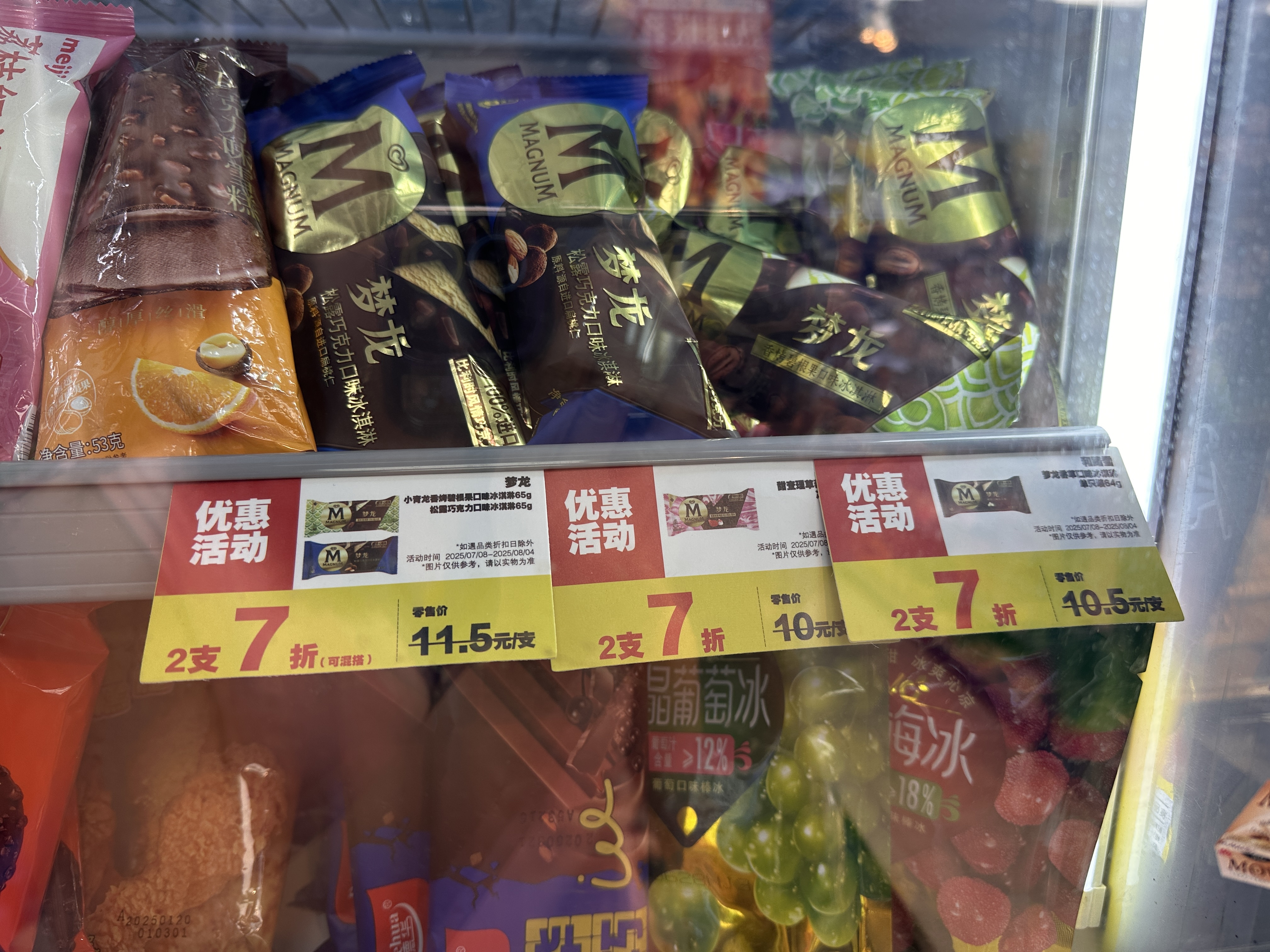 在永旺超市,一排数个冰柜内分别放着不同价格段的雪糕,在琳琅满目的产品中牛顺网,10元以下的产品占主要,“任选5支29元”“任选8支29元”……冰柜上的优惠信息满满当当。