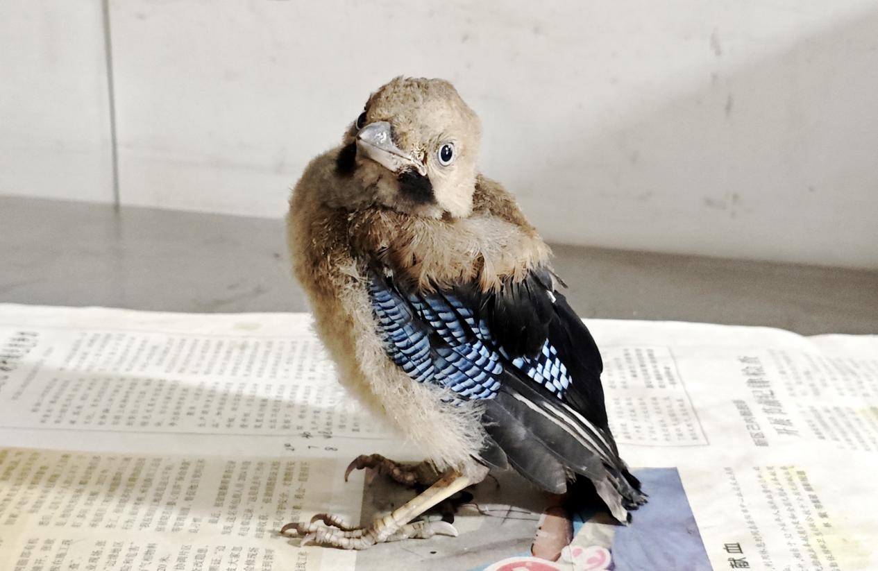 热电部2区副片区长梁旭第一时间联系岳阳市云溪区林业局,说明雏鸟发现经过与救助需求。林业局工作人员迅速赶到现场,确认这只雏鸟实为国家二级保护动物松鸦。